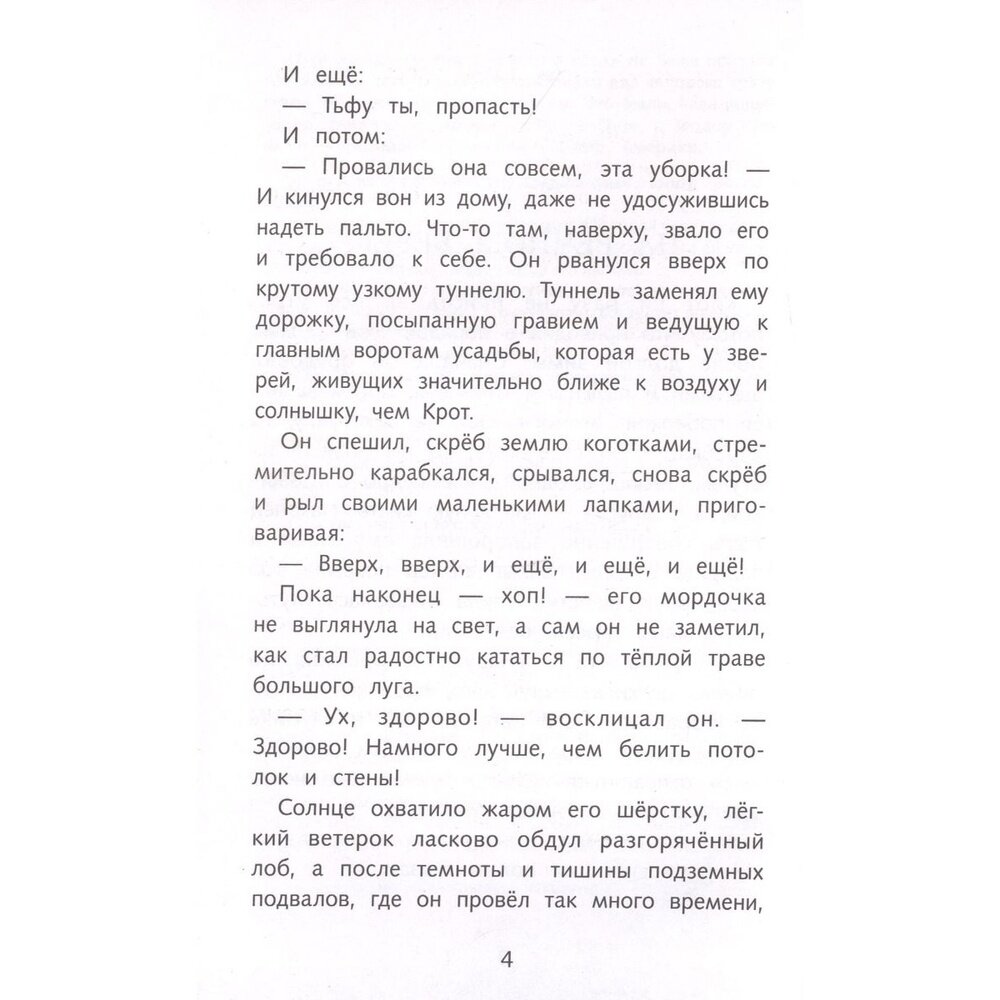 Сказочная повесть шотландского писателя Кеннета Грэма "Ветер в ивах" уже более ста лет пользуется необыкновенной популярностью у читателей всего мира. Героев сказки - любознательного Крота, деликатного дядюшку Рэта, мудрого Барсука и легкомысленного мистера Тоуда - ожидают удивительные, захватывающие приключения.
