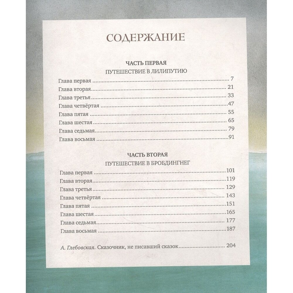 Книга прекраснейше проиллюстрирована, причем некоторые картинки - во весь разворот книги. Но надо иметь в виду, что это - "Гулливер для детей": тут только два первых путешествия (у Свифта их было четыре), текст очищен от "взрослых" подробностей (выкинут, например, "неприличный" эпизод, как Гулливер тушил дворец), нет комментариев с объяснением, что Свифт писал вовсе не сказку, а политический памфлет.