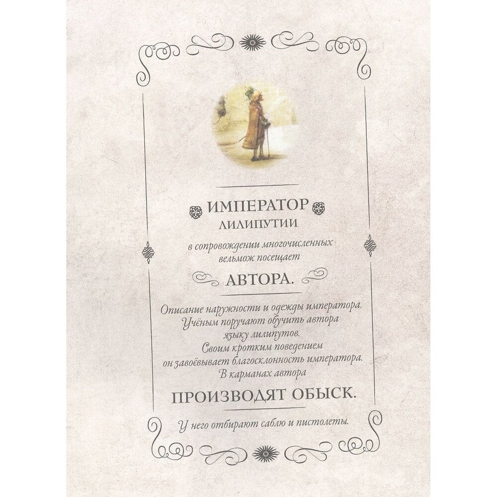 Знаменитый роман английского писателя Джонатана Свифта - шедевр мировой литературы. Великолепные иллюстрации австралийского художника Роберта Ингпена вдыхают жизнь в образы героев этого бессмертного произведения. Р. Ингпен - признанный мастер книжной иллюстрации, создавший замечательные рисунки для сотни книг. В 1986 году он был удостоен Международной премии имени Х. К. Андерсена за вклад в детскую литературу. Р. Ингпен проиллюстрировал такие произведения классической литературы, как "Остров Сокровищ", "Книга джунглей", "Алиса в Стране чудес", "Алиса в Зазеркалье", "Приключения Тома Сойера", "Питер Пэн и Венди", "Ветер в ивах", "Рождественская ёлка", "Вокруг света в восемьдесят дней", "Таинственный сад", "Приключения Пиноккио", "Щелкунчик", "Удивительный волшебник из страны Оз", "Путешествия Гулливера", "Сказки" Киплинга. Издательство "Махаон" представляет вам эти замечательные книги.
