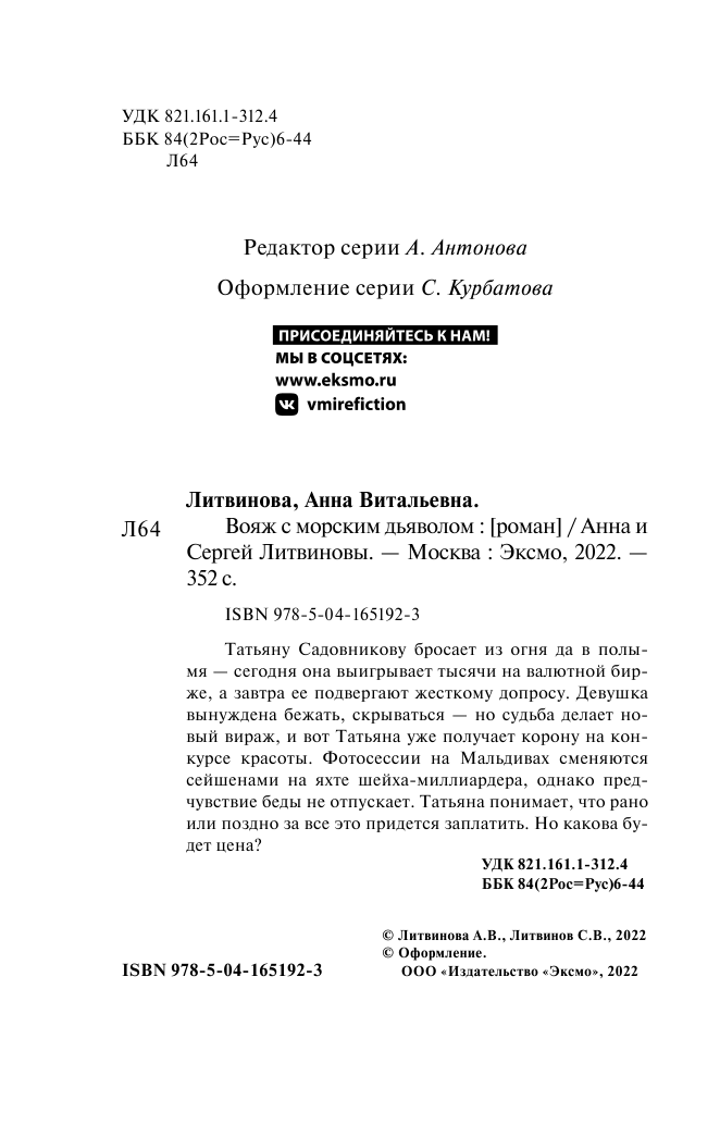 Книга: Вояж с морским дьяволом (Литвинова Анна Витальевна; Литвинов Сергей Витальевич); Эксмо, 2022
