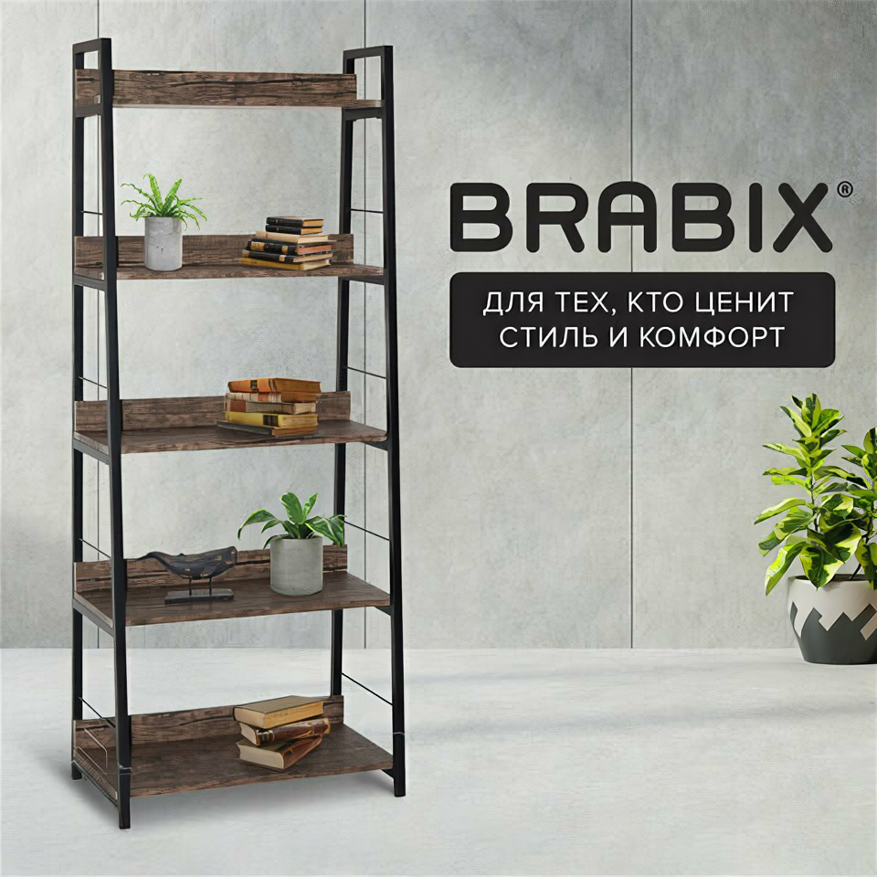 Стеллаж Brabix Loft SH-003 5 полок ШxГxВ: 60х35х150 см морёный дуб