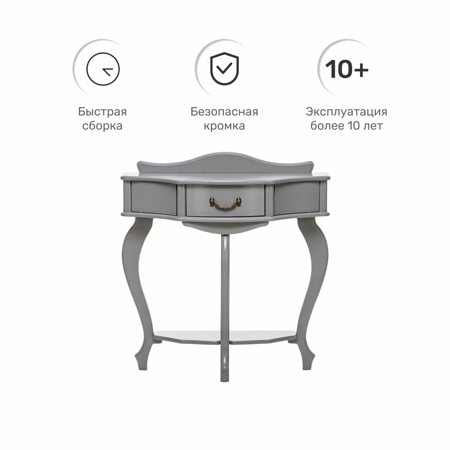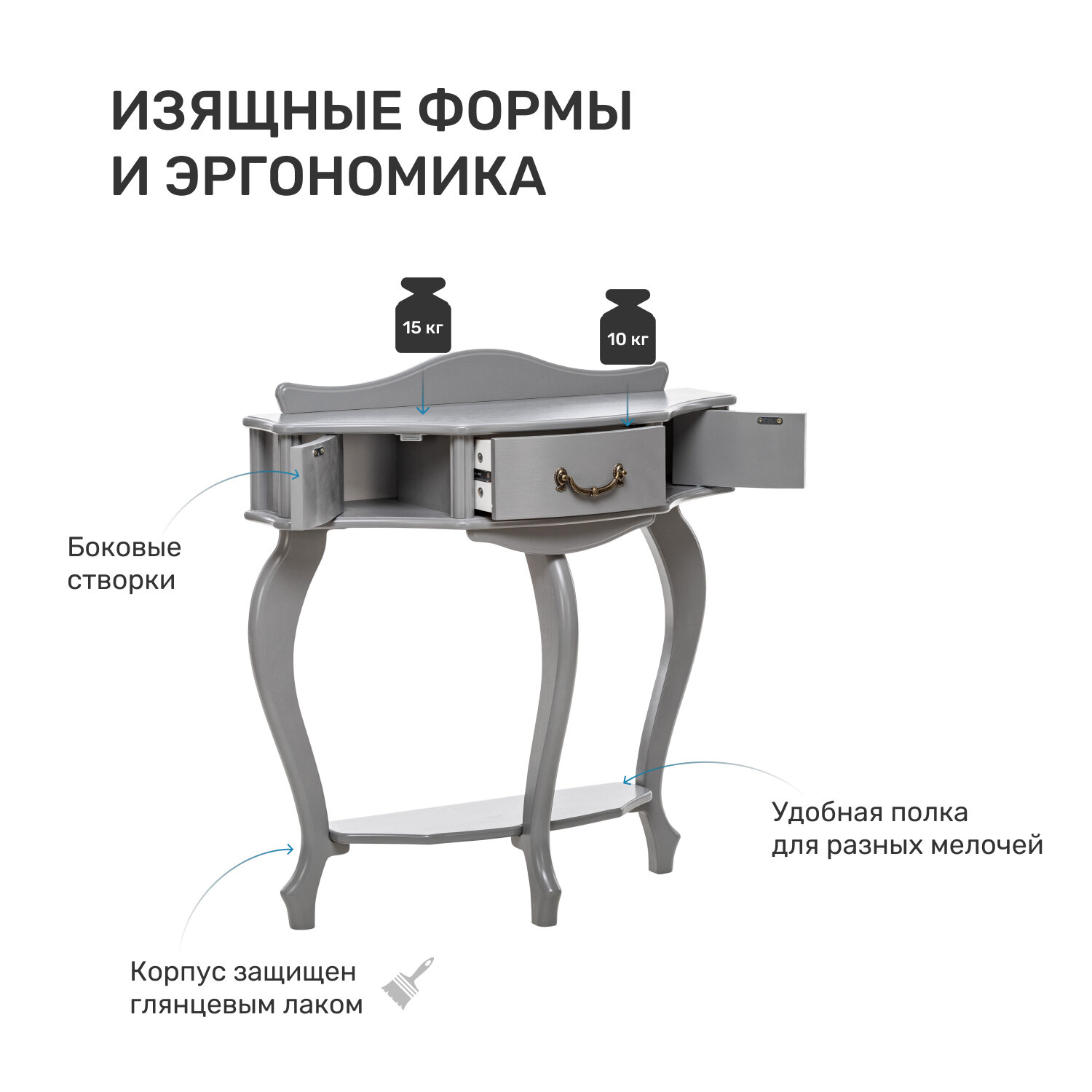 Классический стол-консоль Афина упорядочит хранение важных мелочей там, где для более габаритной мебели недостаточно места. В небольшой прихожей на него можно положить зонт, мобильный телефон или сумку перед выходом из дома, в выдвижном ящике удобно держать ключи и квитанции. В спальне модель послужит заменой туалетному столику, если дополнить столешницу зеркалом. На нижней полке будет красиво смотреться вазон с цветущим домашним растением. Максимальная статическая распределенная нагрузка на центр крышки –10 кг, изделие необходимо крепить к стене.