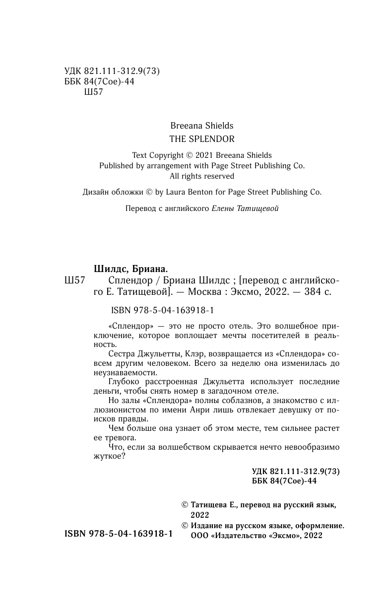 Книга: Сплендор (Бриана Шилдс); Эксмо, Like Book, Редакция 1, 2022