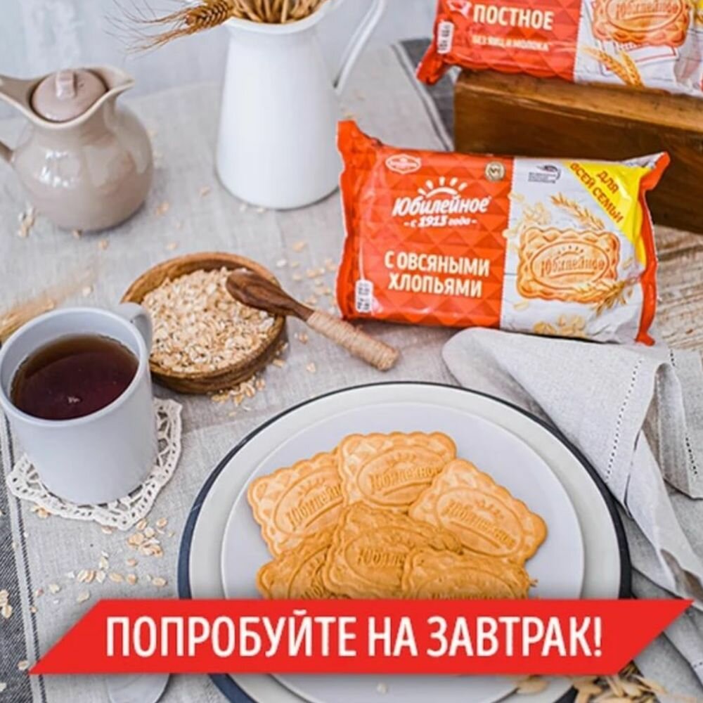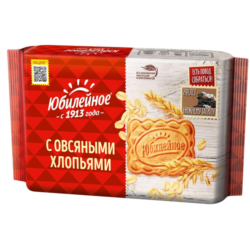Печенье Юбилейное с овсяными хлопьями- это то самое печенье, которое окунет вас в детство. Сладкое витаминизированное молочное печенье идеально дополнит ваш завтрак или обед, прекрасно подойдет в качестве перекуса к чаю или кофе. Станет чудесным угощеньем на праздничном столе или на пикнике.