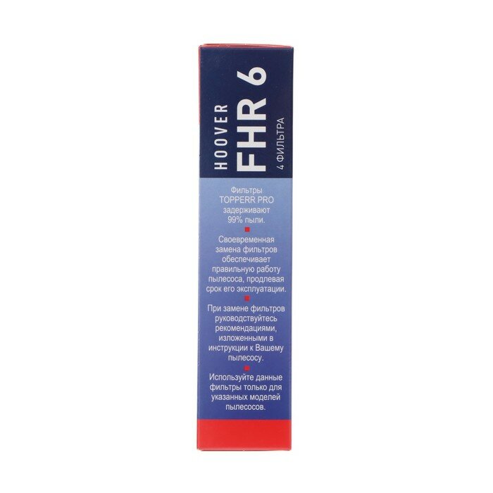 Фильтры для пылесосов Hoover задерживают 99% пыли, продлевая срок службы Вашего пылесоса. Выпускной фильтр — 2 шт. Моющиеся фильтры улавливают оставшиеся микрочастицы пыли на выходе из пылесоса. Предмоторный фильтр — 2 шт. Моющиеся фильтры длительного использования защищают двигатель пылесоса от попадания крупных частиц пыли.