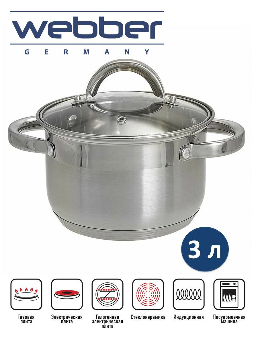 Webber - кастрюля из высококачественной нержавеющей стали, имеет специальную форму, исключающую скопление остатков пищи и жира. Обод препятствует переливанию жидкостей через край. Кастрюля оснащена термосберегающим дном (пятислойное капсульное индукционное дно с повышенной термоотдачей).