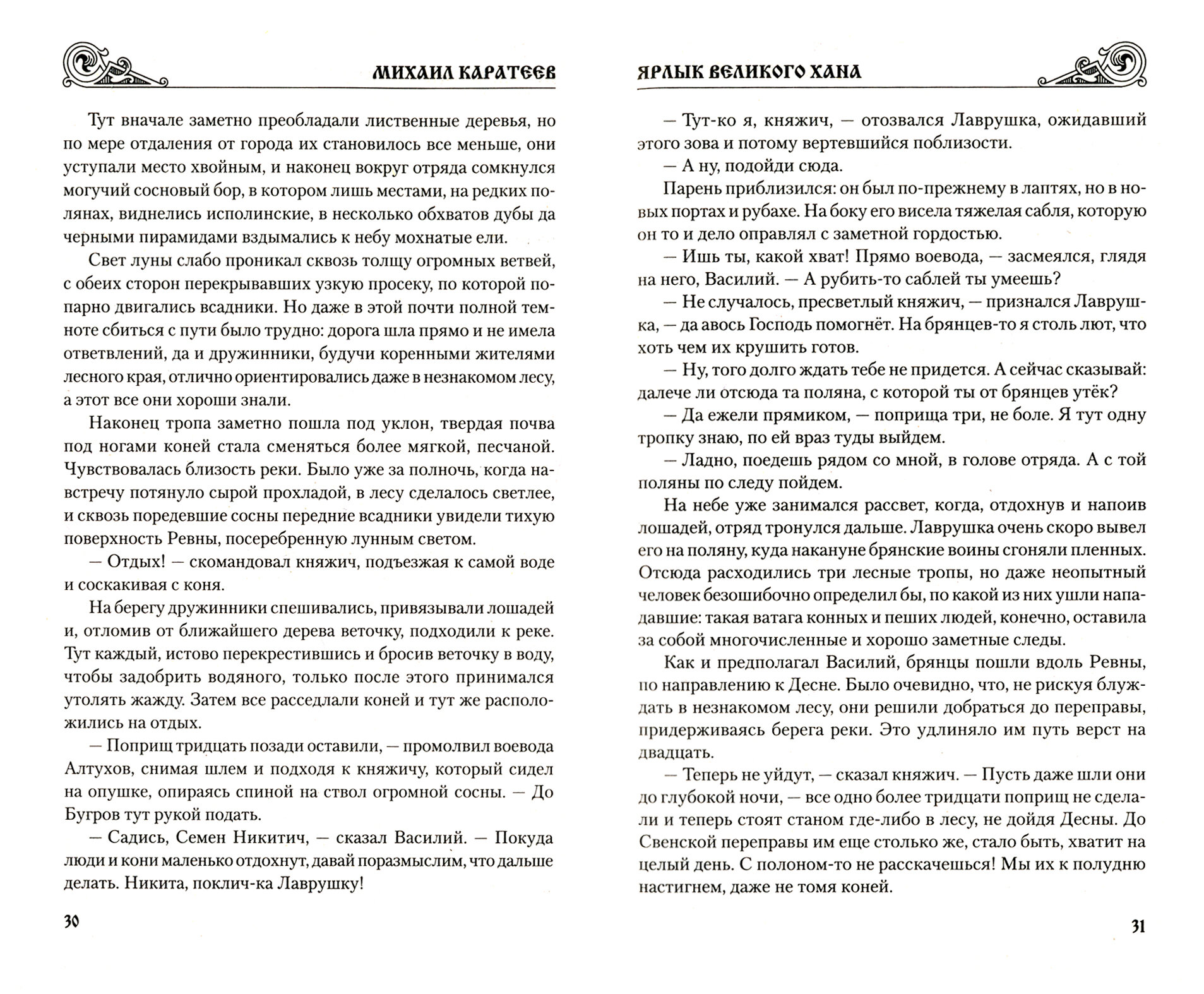 1338 год. После татарского нашествия Русская земля слаба и раздроблена на множество осколков. Один из них — Карачевское княжество, часть княжества Черниговского, давно канувшего в небытие. Карачевскому князю Пантелеймону уже 70 лет, здоровье слабеет, а тут еще напасть — старика хватил удар, жить осталось недолго. Хорошо, что есть преемник — сын Василий, но братья престарелого князя просто так Василию престол не отдадут. Они пойдут на любую хитрость и подлог. Знают, что Василий — человек прямой и честный. Такому вряд ли выстоять против лжи и интриг. Главный вопрос: кого в этой тяжбе сочтёт правым золотоордынский хан, у которого русские князья теперь должны испрашивать ярлык на княжение? Так начинается известный роман Михаила Каратеева, рассказавшего в художественной форме подлинную историю своих предков, князей карачевских.