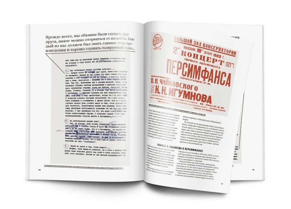 Издание книги приурочено к 100-летнему юбилею Первого симфонического ансамбля имени Моссовета, легендарного оркестра без дирижера. Персимфанс сегодня, как и в 1920-30-х, состоит из ведущих московских музыкантов. Книга впервые описывает историю ансамбля и его новую жизнь с 1922 по 2022 год, содержит уникальные фотографии и архивные материалы. Через графическую сюиту Ярослава Шварцштейна читатель увидит фантасмагоричный сон Персимфанса, продлившийся с 1933 по 2008 год, пока не родилась идея возродить ансамбль. Не оставаясь явлением лишь постреволюционной эпохи, Персимфанс сформировал свою особую эстетику и философию, уникальные методы коллективной работы над интерпретацией сочинений и альтернативный подход к исполнению больших симфонических партитур, имеющие в настоящее время едва ли не большую актуальность, чем в прошлом.