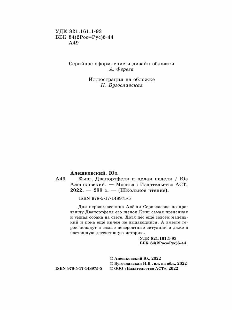 На сегодняшний день товар «Книга: Кыш Два портфеля и целая неделя (Юз Алешковский); Издательство АСТ, 1970» можно купить с кешбеком в 5 магазинах: book24, ЛитРес, Буквоед, Onliner BY, Читай-город