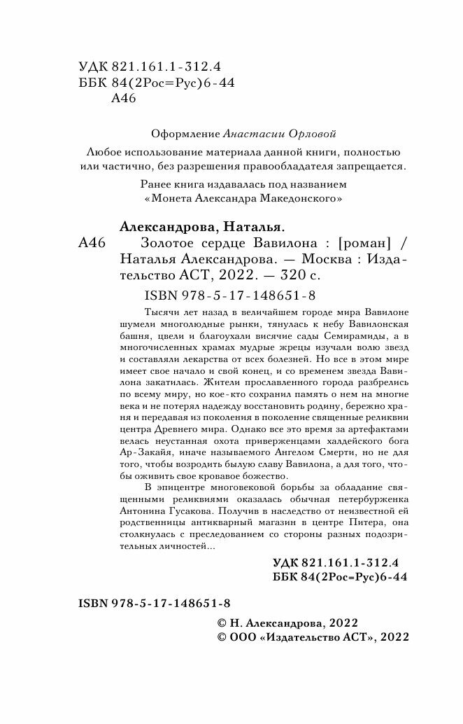 Книга: Золотое сердце Вавилона (Александрова Наталья Николаевна); ООО "Издательство Астрель", 2022
