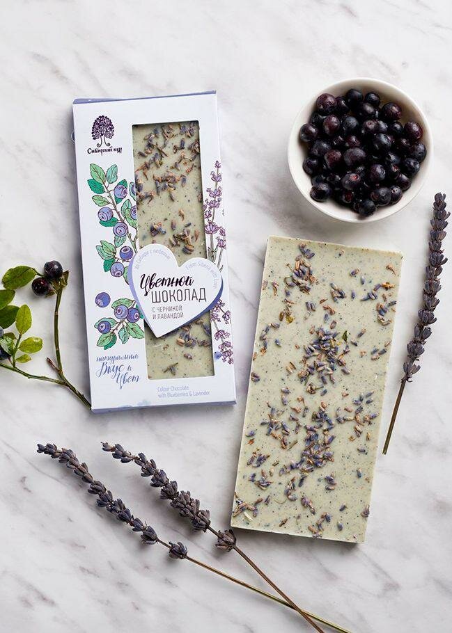 Шоколад Сибирский Кедр Белый с черникой и лавандой 100г