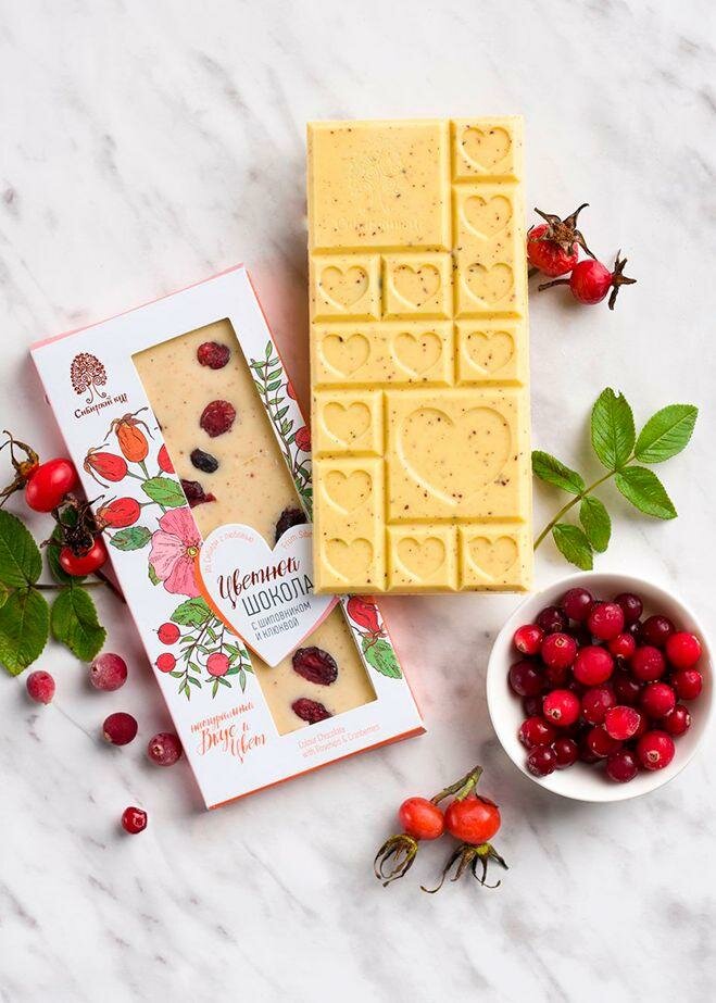 Шоколад Сибирский Кедр Белый с шиповником и клюквой 100г