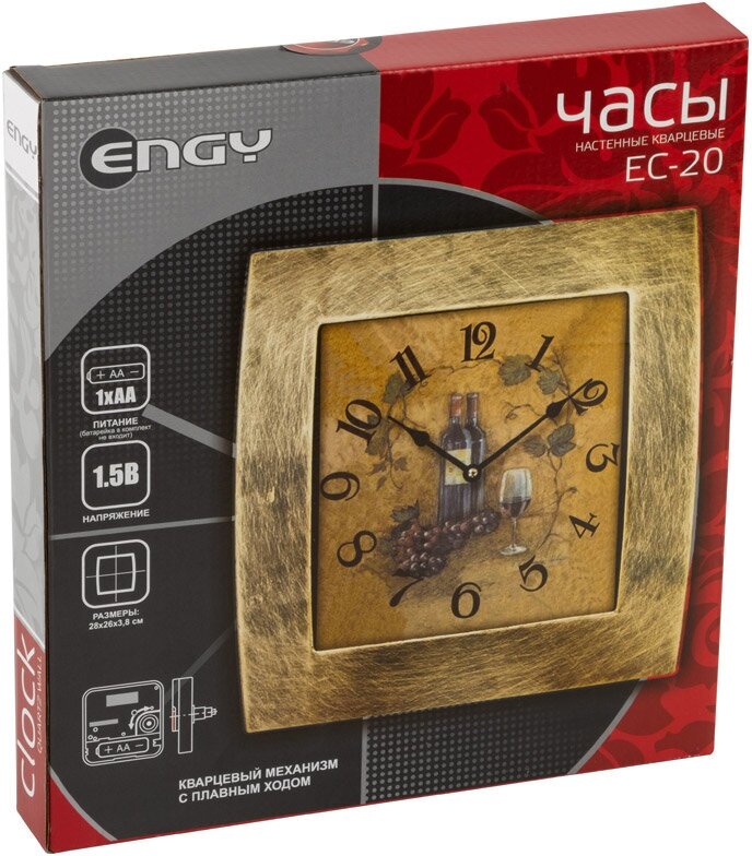 часы настенные кварцевые engy модель ес-20 квадратные 9320 Energy (размер: 280x260x38 см)