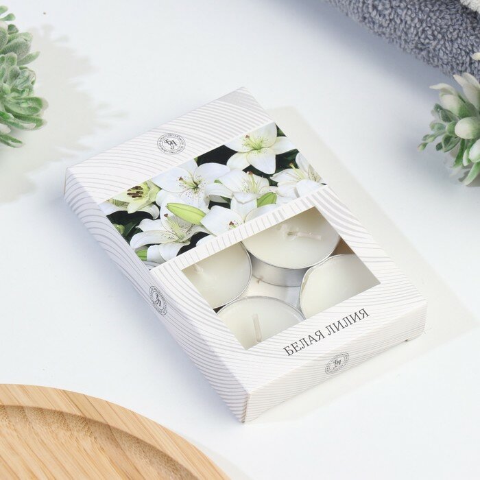 свеча ароматическая чайная малая 6шт белая лилия kukina raffinata 202803