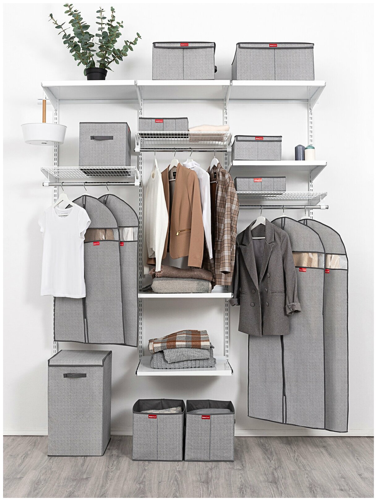 Чехол для одежды, размер 60*135см. Плотный нетканый материал защищает от грязи и пыли. Прозрачное окно. Продуманный дизайн, напоминающий твид для дорогого мужского костюма, подойдет для любого интерьера.