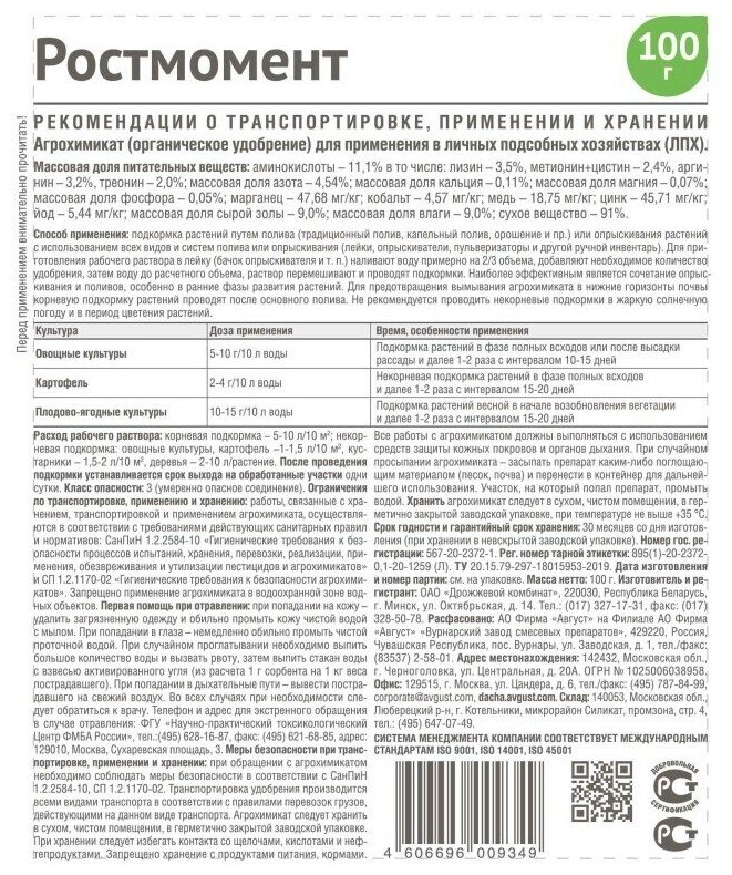 Модель: Удобрение Август Ростмомент универсальное 100 г