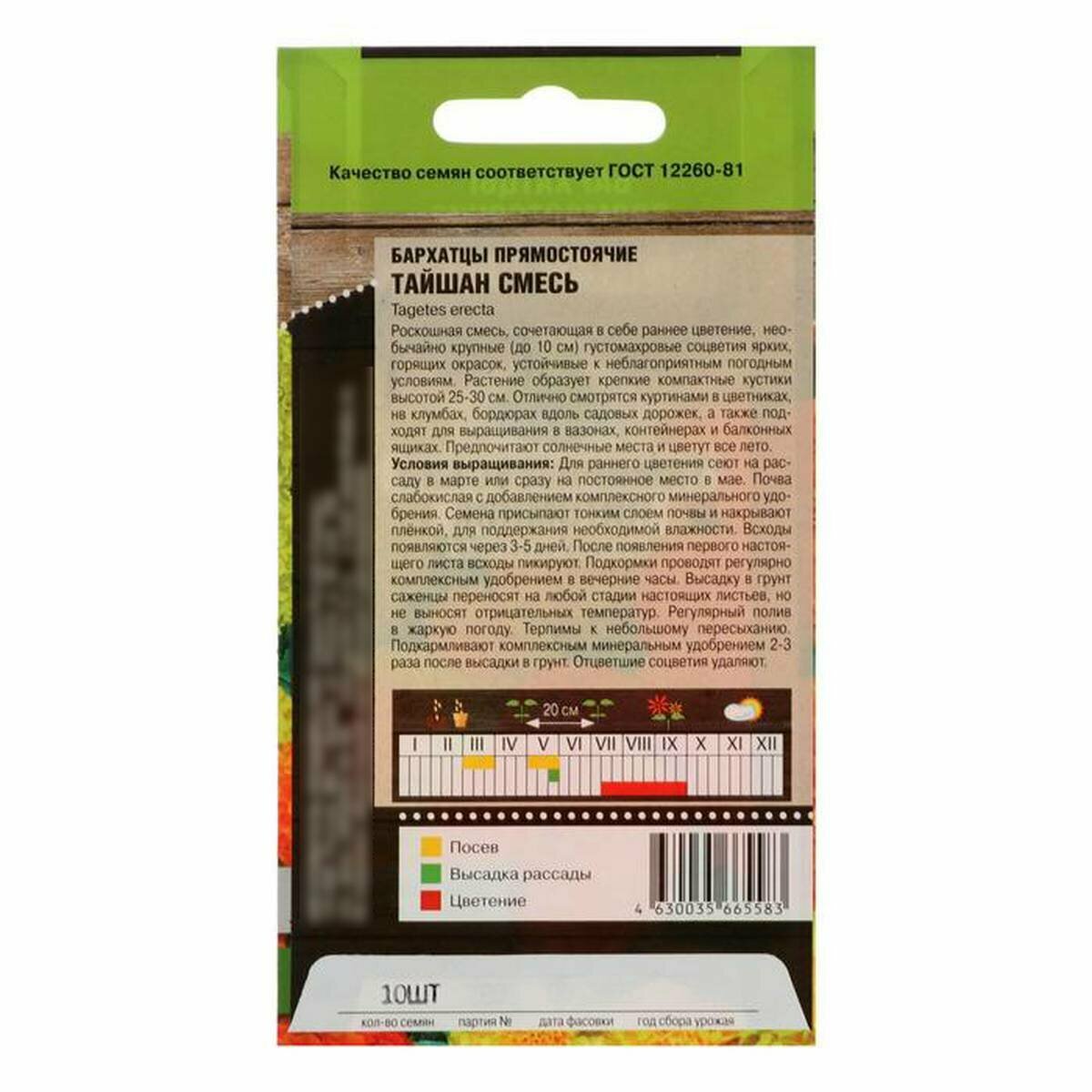 семена tim/цветы бархатцы прямостоячие тайшан смесь 10шт Тимирязевский питомник