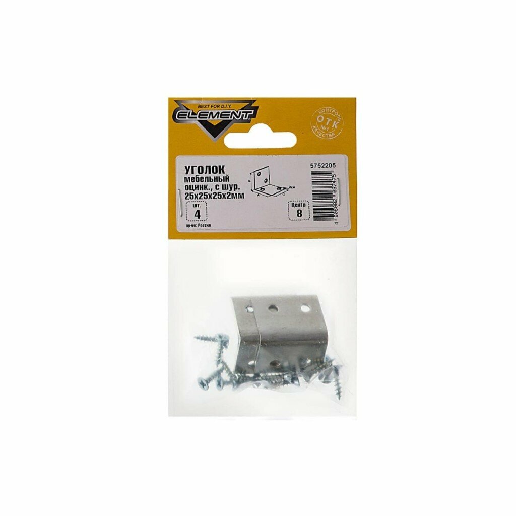 уголки мебельные 25x25x25x2 с шур. белый цинк 4шт element 151090