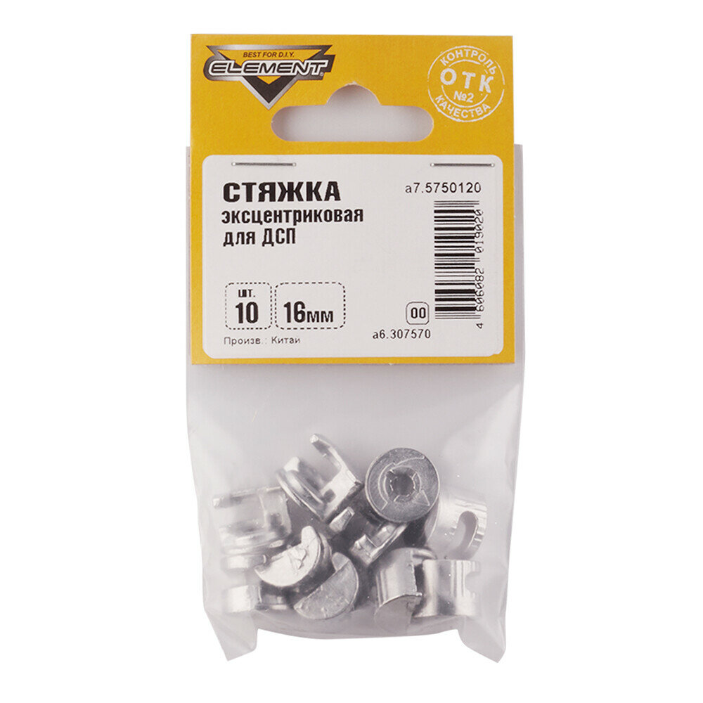 стяжка эксцентриковая для дсп 16 мм белый цинк 10шт element 307570