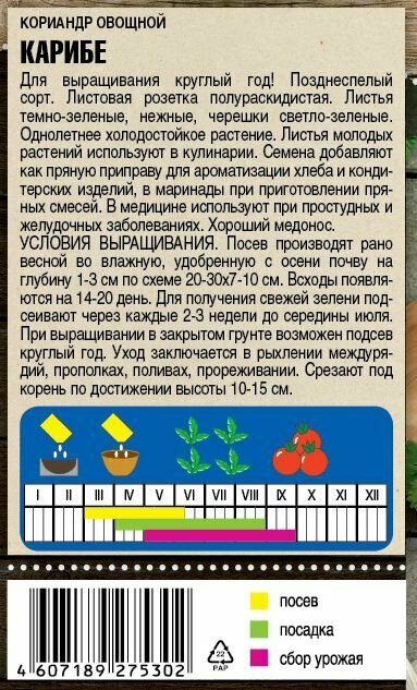 семена tim/кориандр карибе 3 г 22487 Тимирязевский питомник