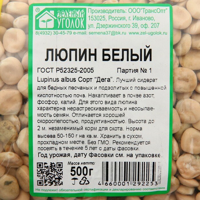 Сервис сравнения цен СкидкаГИД предлагает сравнить цены на товар «сидерат люпин зеленый уголок 05 кг.»
