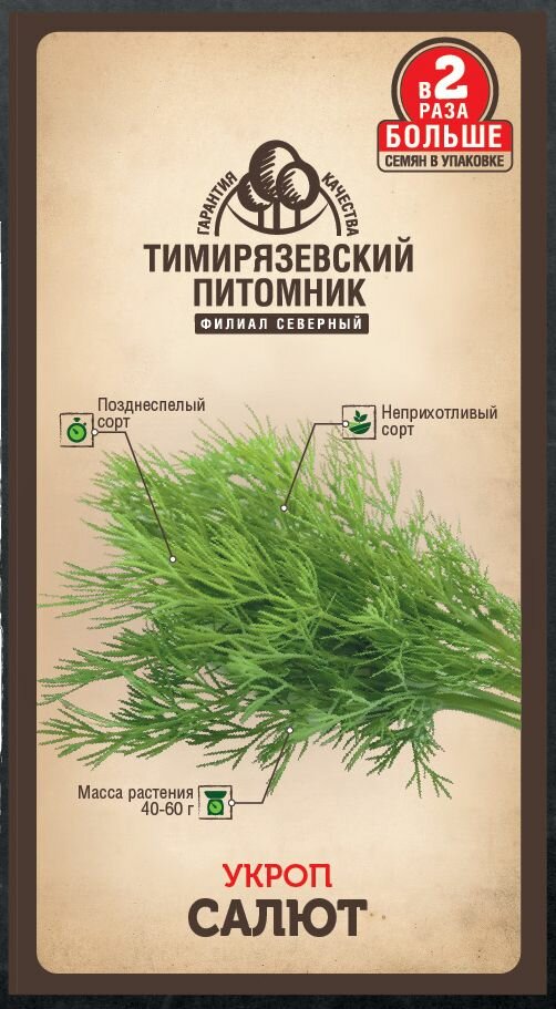 На сегодняшний день товар «семена tim/укроп салют поздний 6 г двойная фасовка 22744 Тимирязевский питомник» можно купить с кешбеком в 1 магазине: Яндекс.Маркет