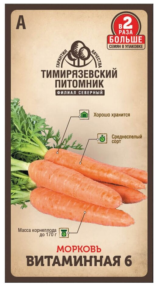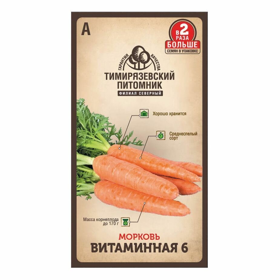 Откройте для себя идеальный выбор для вашего огорода — семена моркови "Витаминная 6" от Тимирязевского питомника. Эти среднеспелые семена в яркой цветной упаковке станут отличным дополнением к вашему саду, обеспечивая богатый урожай сочной и вкусной моркови.