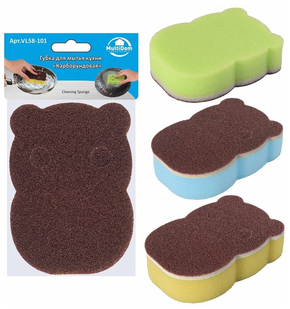 губка для мытья кухни карборундовая multidom поролон vl58-101