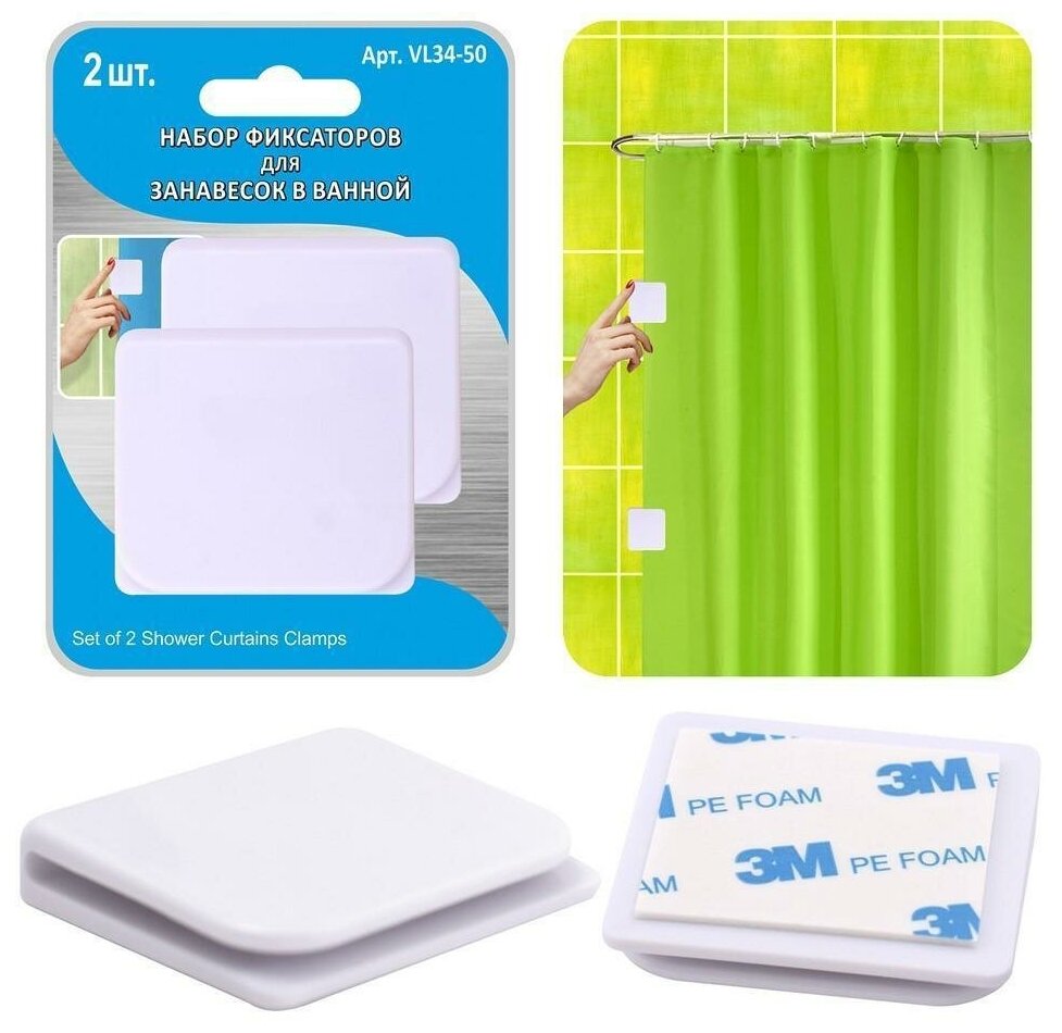 Как поддерживать чистоту во время приема душа? Не всегда только занавеска способна защитить от капель на полу, иногда требуются дополнительные приспособления. Набор фиксаторов для занавесок в ванной - практичное решение, позволяющее герметично закрывать пространство для приема душа. Ваш пол останется чистым, на него не попадет лишняя влага. К стене крепятся при помощи самоклеящейся основы с обратной стороны фиксаторов, а после удаления не оставляют следов. Изготовлены из пластмассы (ABS). Размер 5х4,5 см
