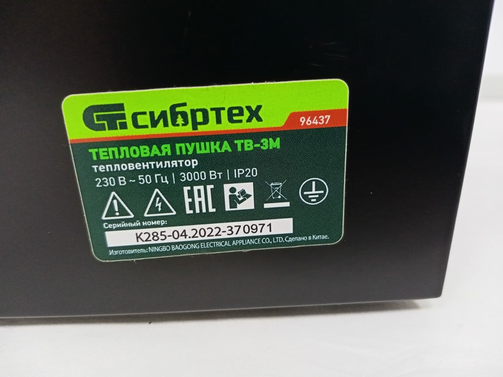 тепловая пушка сибртех тв-3м 230в 3квт 96437 ТВ-3М, 96437