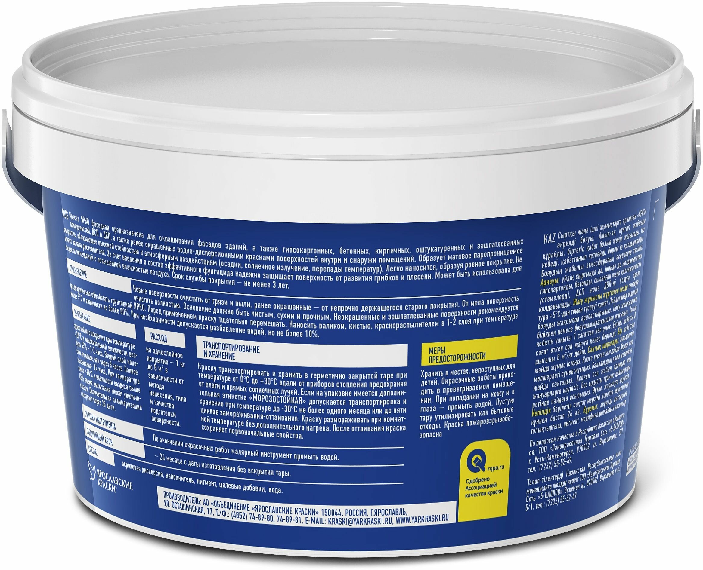 Краска ЯРКО фасадная предназначена для окрашивания фасадов зданий, а также гипсокартонных, бетонных, кирпичных, оштукатуренных и зашпатлеванных поверхностей, ДСП и ДВП, а так же ранее окрашенных водно-дисперсионными красками поверхностей внутри и снаружи помещений. Образует матовое паропроницаемое покрытие, обладающее высокой стойкостью к атмосферным воздействиям(осадки, солнечное излучение, перепады температур). Легко наносится, образуя ровное покрытие. Не имеет запаха растворителя. За счет введения в состав эффективного фунгицида надежно защищает поверхность от развития грибков и плесени. Может быть использована для окраски помещений с повышенной влажностью воздуха. Срок службы покрытия-не менее 3 лет.