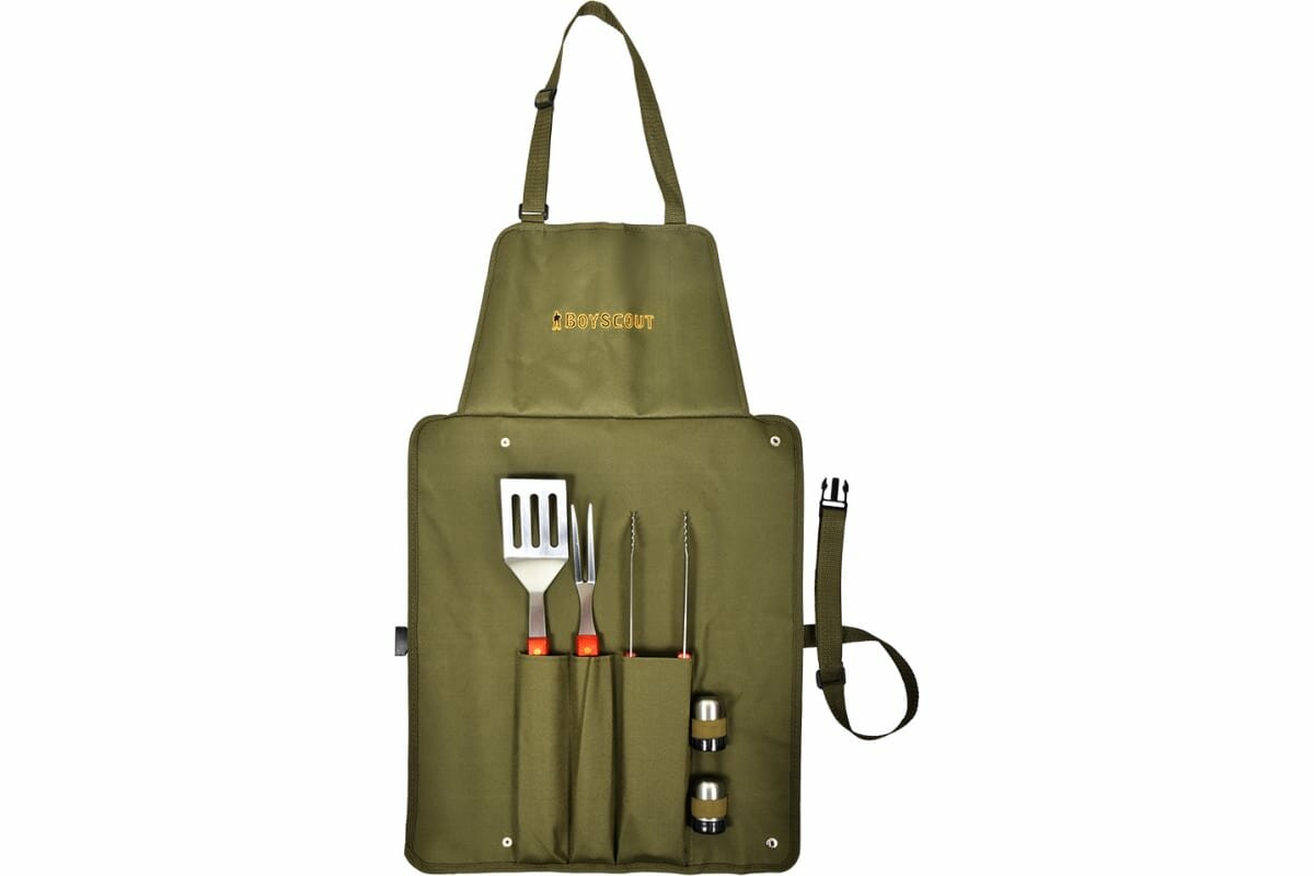 BOYSCOUT Набор (сумка-фартук, вилка, лопатка, щипцы, солонка, перечница)