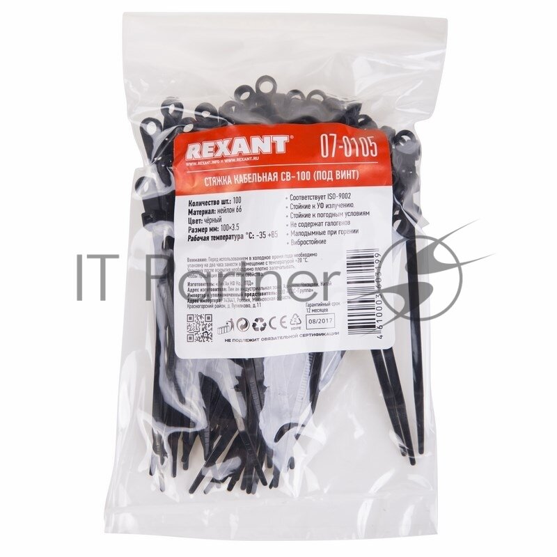 На сегодняшний день товар «хомут пластиковый (стяжка) 35*100мм под винт черный (100шт) нейлон rexant 07-0105 Smartbuy» можно купить с кешбеком в 1 магазине: Яндекс.Маркет
