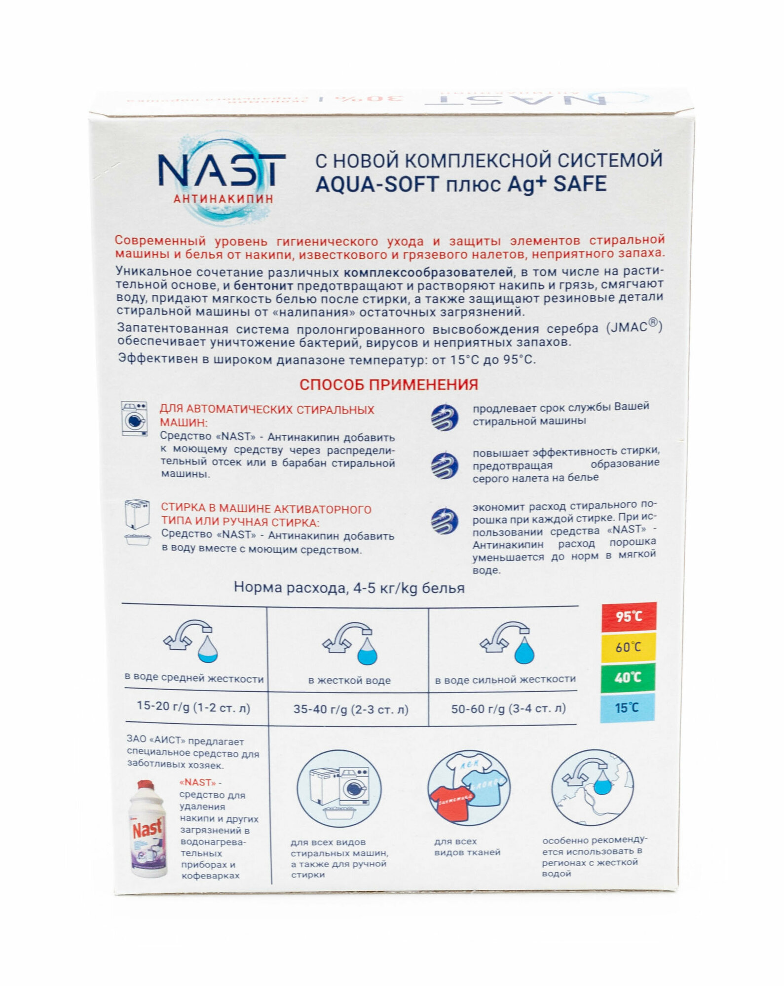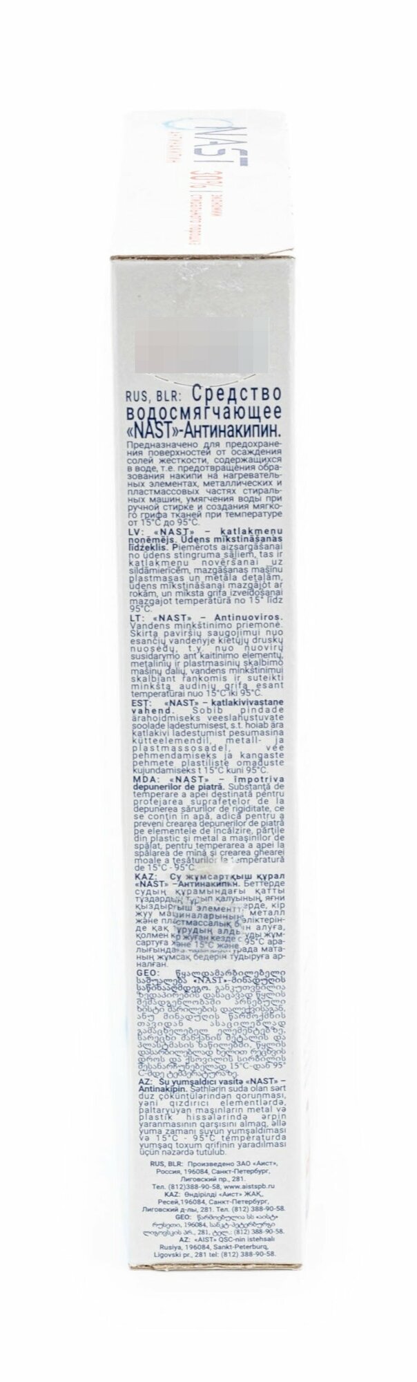 Новый уровень защиты элементов стиральной машины и Вашего белья от накипи и известкового налёта при каждой стирке и любой температуре.Содержащиеся в жёсткой воде соли кальция и магния (соли жёсткости) при стирке оседают на элементах стиральной машины, существенно сокращая срок её службы.Кроме того, соли жёсткости оседают и закрепляются на волокнах ткани, образуя трудновыводимый серый налёт. «Аист- Антинакипин» переводит соли жёсткости воды в растворимое состояние, нейтрализуя их негативное действие.- Средство продлевает срок службы стиральной машины- Повышает эффективность стирки, предотвращает образование серого налёта на белье.- Экономит расход стирального порошка при каждой стирке. При использовании средства расход порошка уменьшается до норм в мягкой воде.