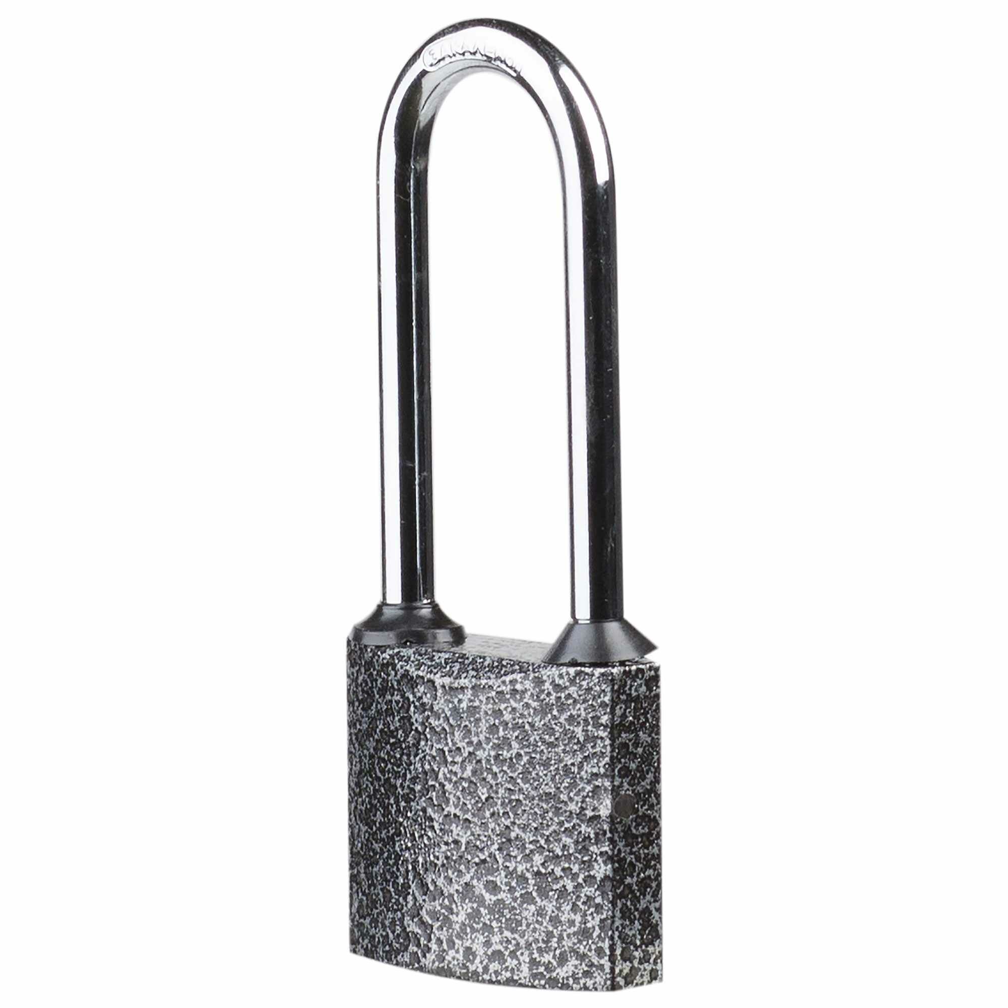 Чугунный навесной замок 38 мм с длинной дужкой. Сильные стороны: универсализм, прочность, влагостойкость. Идеально подойдет если вам нужен амбарный замок под неплотно прилегающие или высоко расположенные петли. Корпус из чугуна, дужка из закаленной стали. Антикоррозийное покрытие: порошковая краска и гальваника. 2 уплотнителя, дренажный канал для защиты от дождя и снега. «Английская» личинка с 4 латунными штифтами. Автоматическое запирание. В комплекте: замок навесной Palladium 303F-40L, 3 английских ключа. Высота проема дужки: 56 мм. Ширина проема дужки: 20 мм.