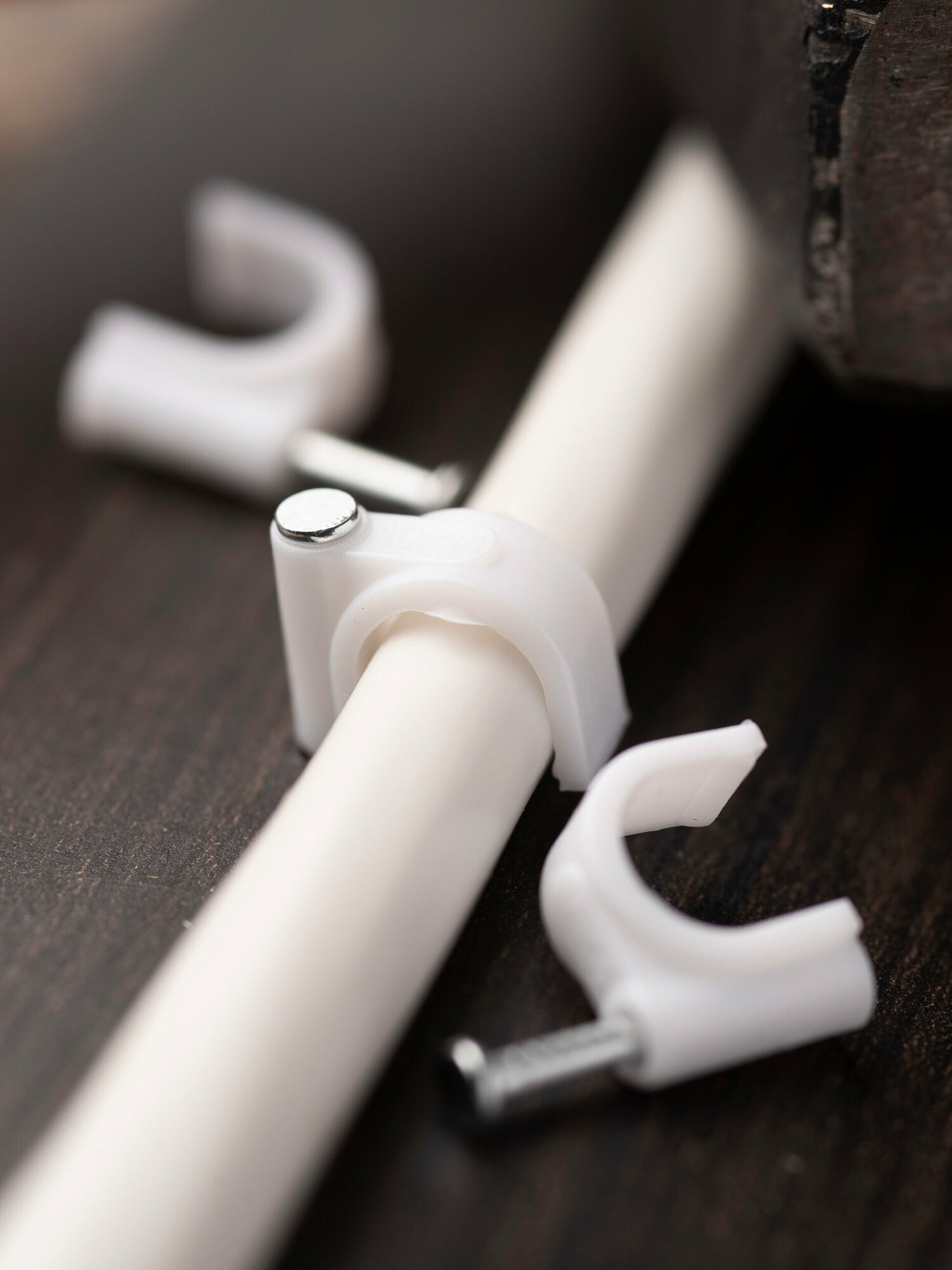ОПИСАНИЕ. Предназначены для быстрого и надежного крепления круглых и плоских кабелей. Гибкий, негорючий, ударопрочный полипропилен. ПРЕИМУЩЕСТВА. Гвоздь: закаленная оцинкованная сталь, не подвержен коррозии. Надежное крепление. На каждой скобе указан типоразмер. Удобство хранения россыпью. Материал: полипропилен, самозатухающий, без галогенов. Поставляется в комплекте с уже вставленным гвоздем. ПРИМЕНЕНИЕ. Для быстрого монтажа проводов или кабелей в строениях жилого или промышленного назначения. Предназначены для быстрого и надежного крепления круглых и плоских кабелей.
