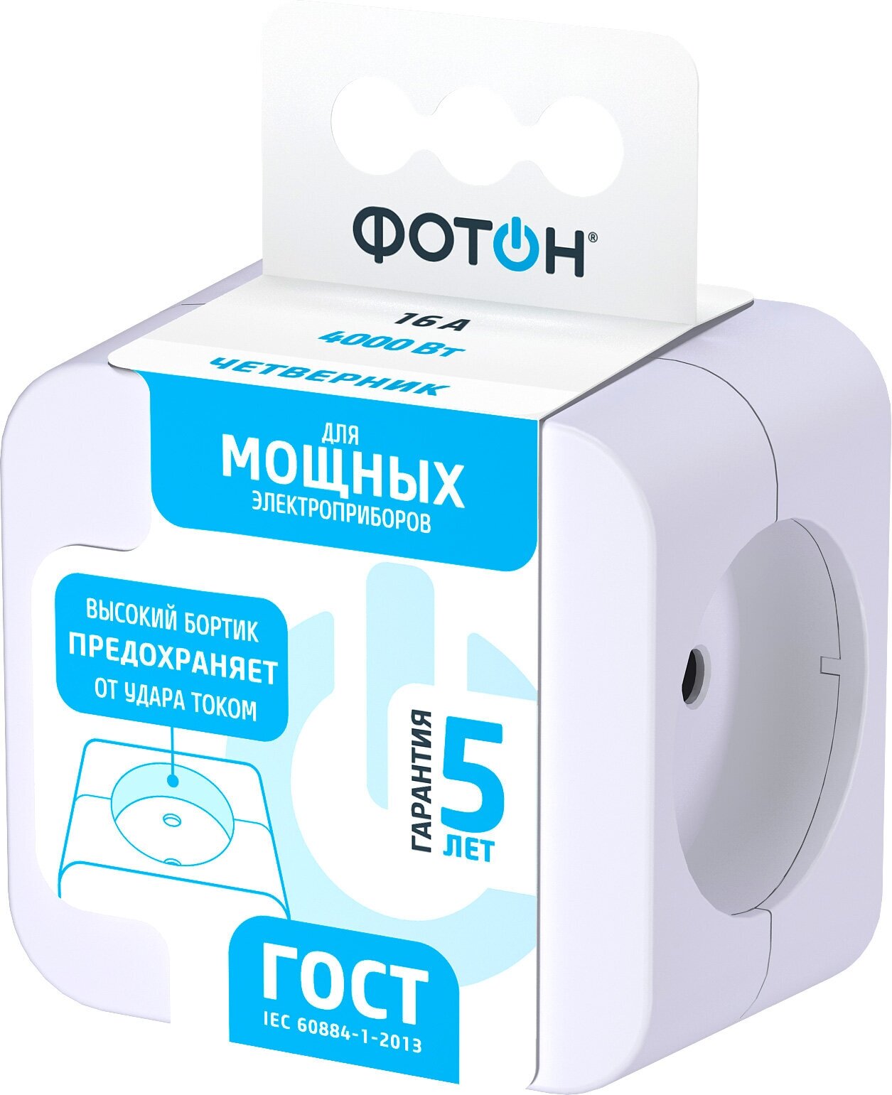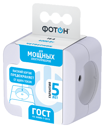 Сетевой разветвитель Фотон. Максимальная мощность - 16А/4000 Вт, материал корпуса - поликарбонат (пластик премиум сегмента).