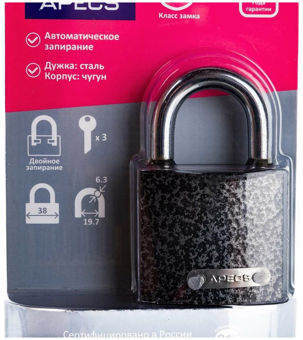 На сегодняшний день товар «замок навесной apecs pd-01-38 (mвс-124)» можно купить с кешбеком в 1 магазине: Яндекс.Маркет