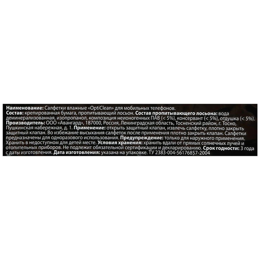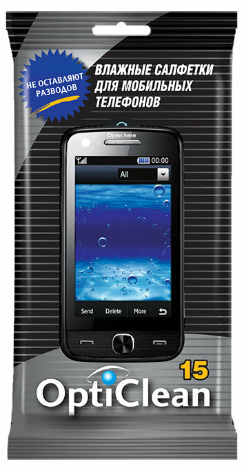 салфетки влажные opti clean 15шт для мобильных телефонов