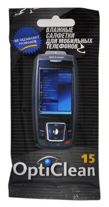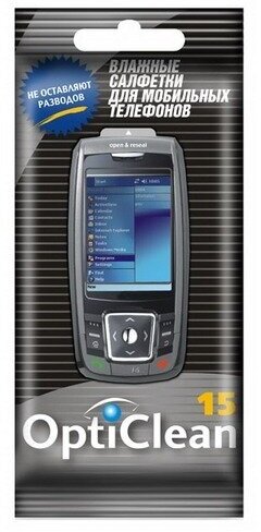Салфетки Opti Clean влажные для мобильных телефонов, 15шт.
