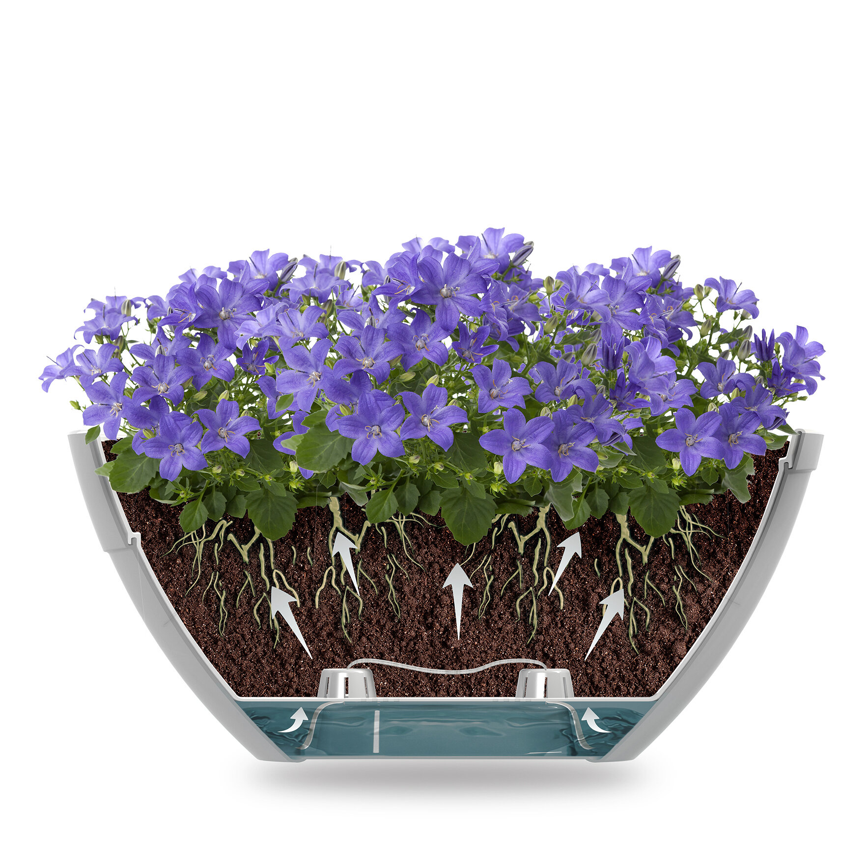 Оригинальный Вазон "calipso" PREMIUM класса для всех видов цветов. Встроенная дренажная система с тканевой лентой для фитильного полива и контролем уровня воды. Данная система автополива позволяет снабжать растения водой до 4-х недель. Это позволяет Вам сохранить растения, когда Вы находитесь в отъезде.