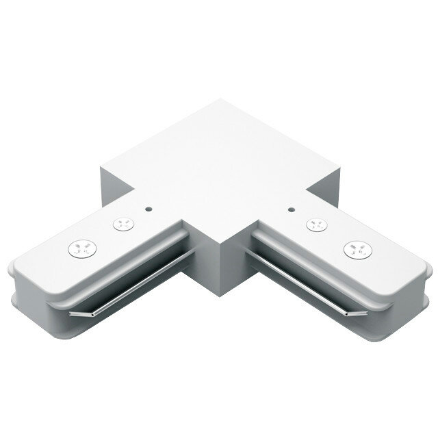 Угловой коннектор для соединения шинопроводов под углом 90° без возможности подвода питания. С помощью коннекторов из шинопроводов можно собрать трековую систему любой конфигурации.
