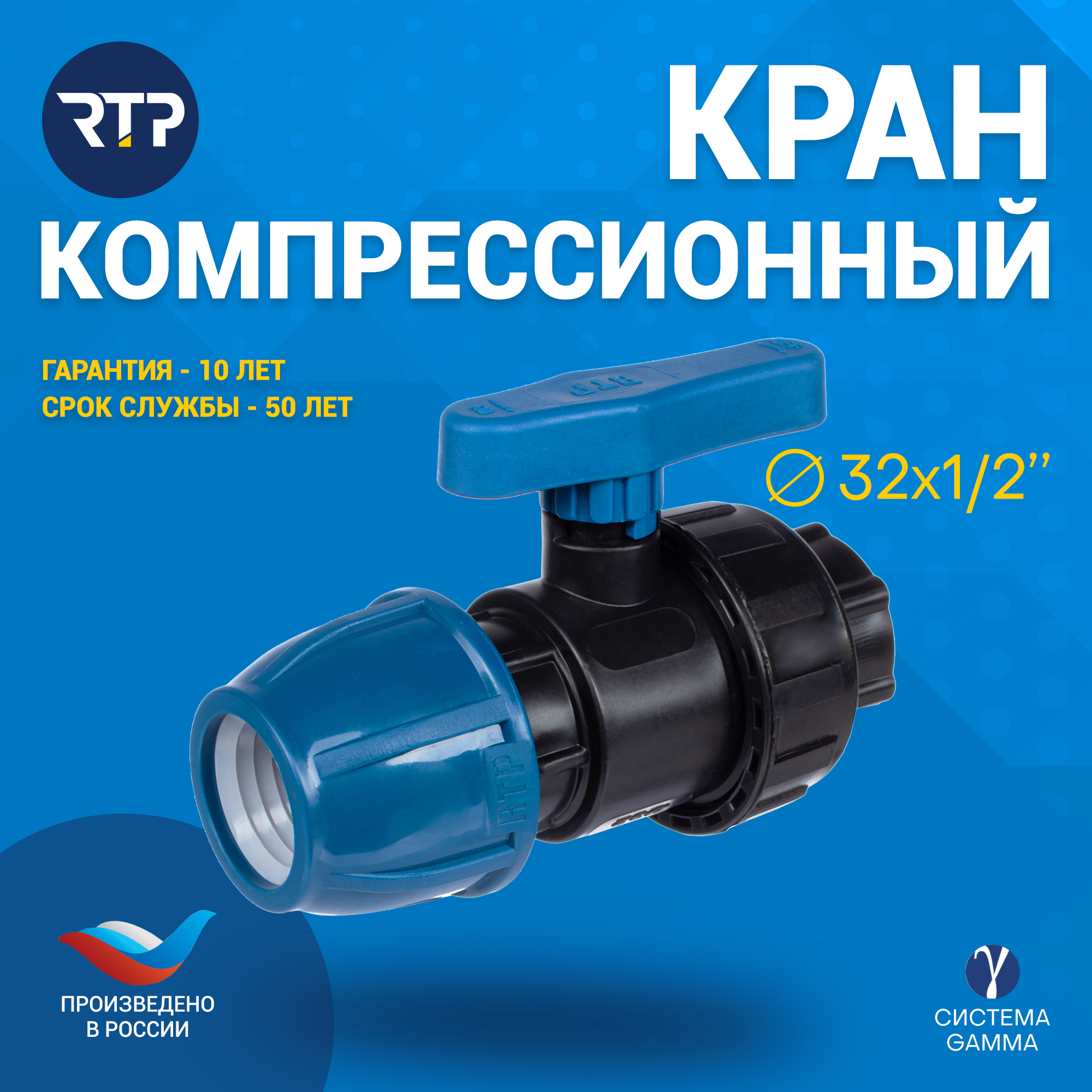 кран шаровый внутренняя трубная резьба/цанга d 32x1 " Ростурпласт