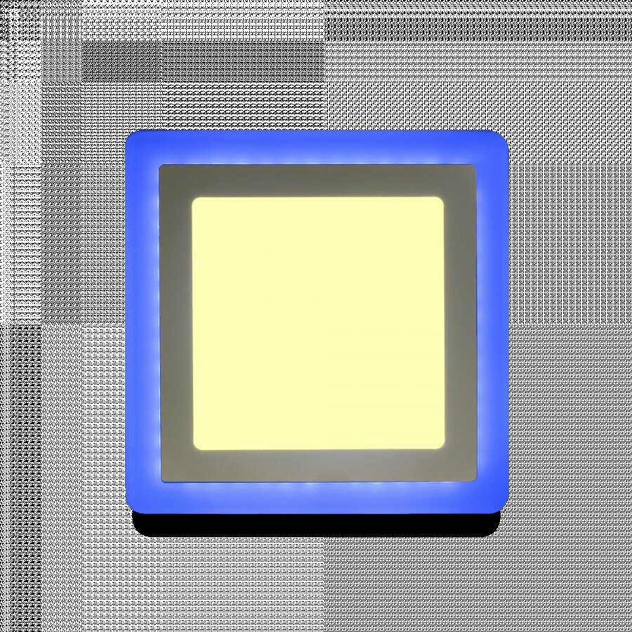 1 040Лм, 195х195х10 мм, врезное отверстие 155x155 мм, матовый рассеиватель, основной свет 3 000К, дополнительный свет синий, 3 режима: основной свет, дополнительный свет, совместный режим, режимы переключаются выключателем