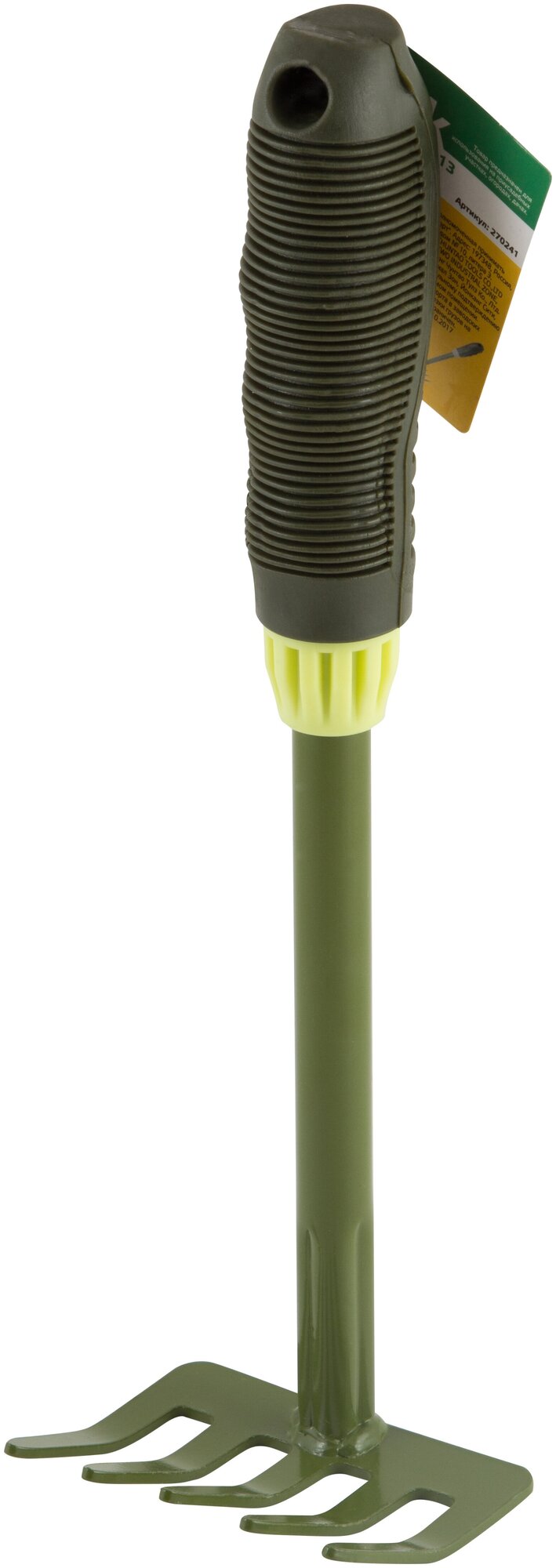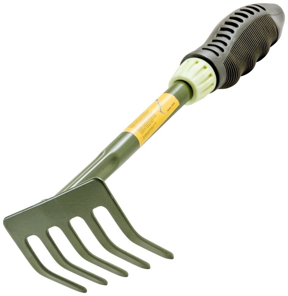 Рыхлитель предназначен для подготовки земли к посадке и дальнейшему уходу за растениями. Количество зубьев: 5. Материал: сталь, пластик. Параметры рабочей части: 9*7,7*16 см. Параметры ручки: 12,7*4*4 см. Эргономичная ручка изготовлена со специальными насечками и выемками, благодаря которым она идеально ложится в руку, не скользит и обеспечивает полный комфорт при использовании.