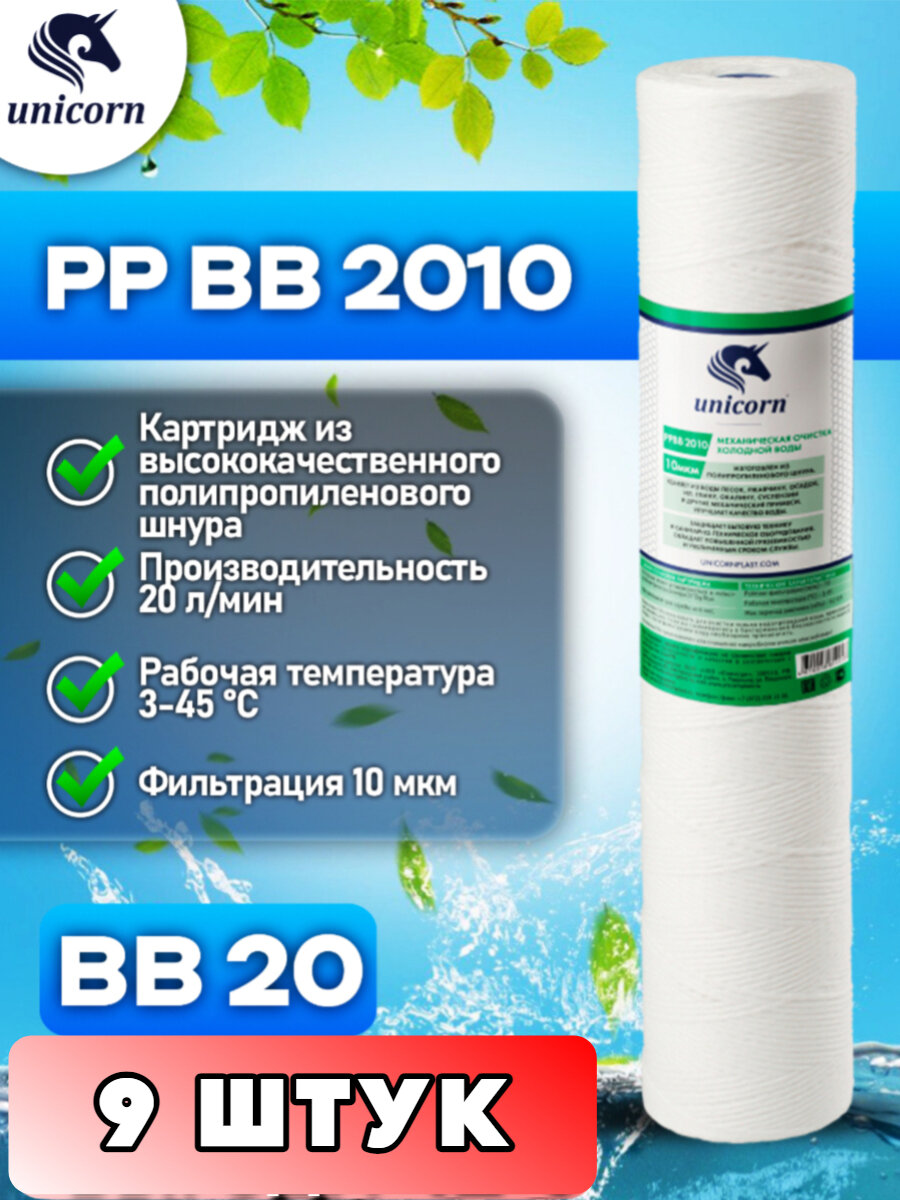 картридж для механической очистки воды 20bb 20мкм unicorn pp bb 20-20 PP20BB20
