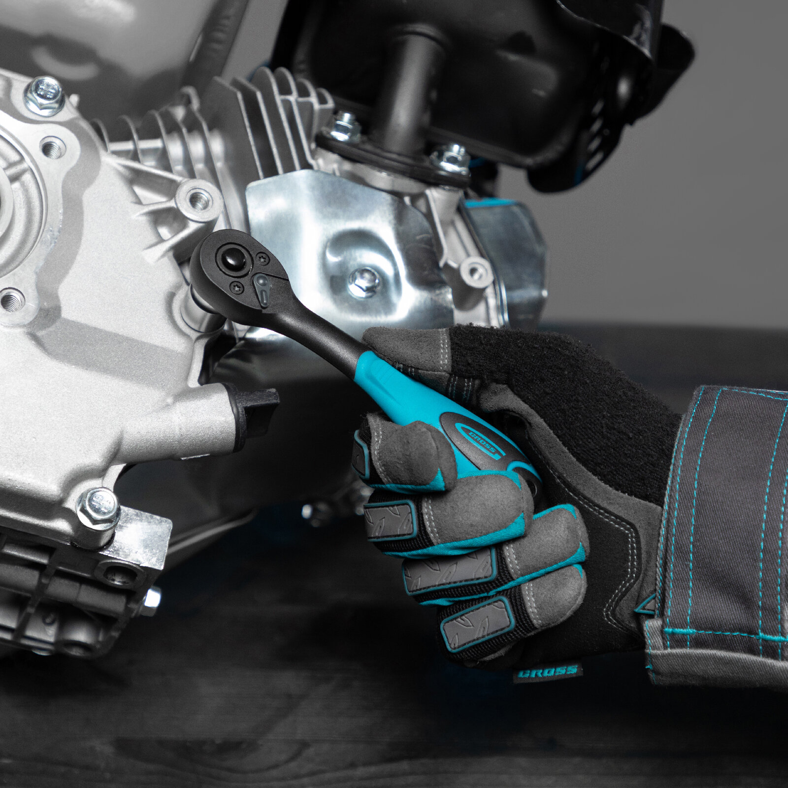 Ключ-трещотка 1/4" GROSS Comfort 14086 создан для комфортной работы. С его помощью легко выполняют закручивание гаек. Изготовлен из прочной хромованадиевой стали и имеет защитное покрытие. Благодаря трещоточному механизму с 72 зубьями обеспечена плавность хода.