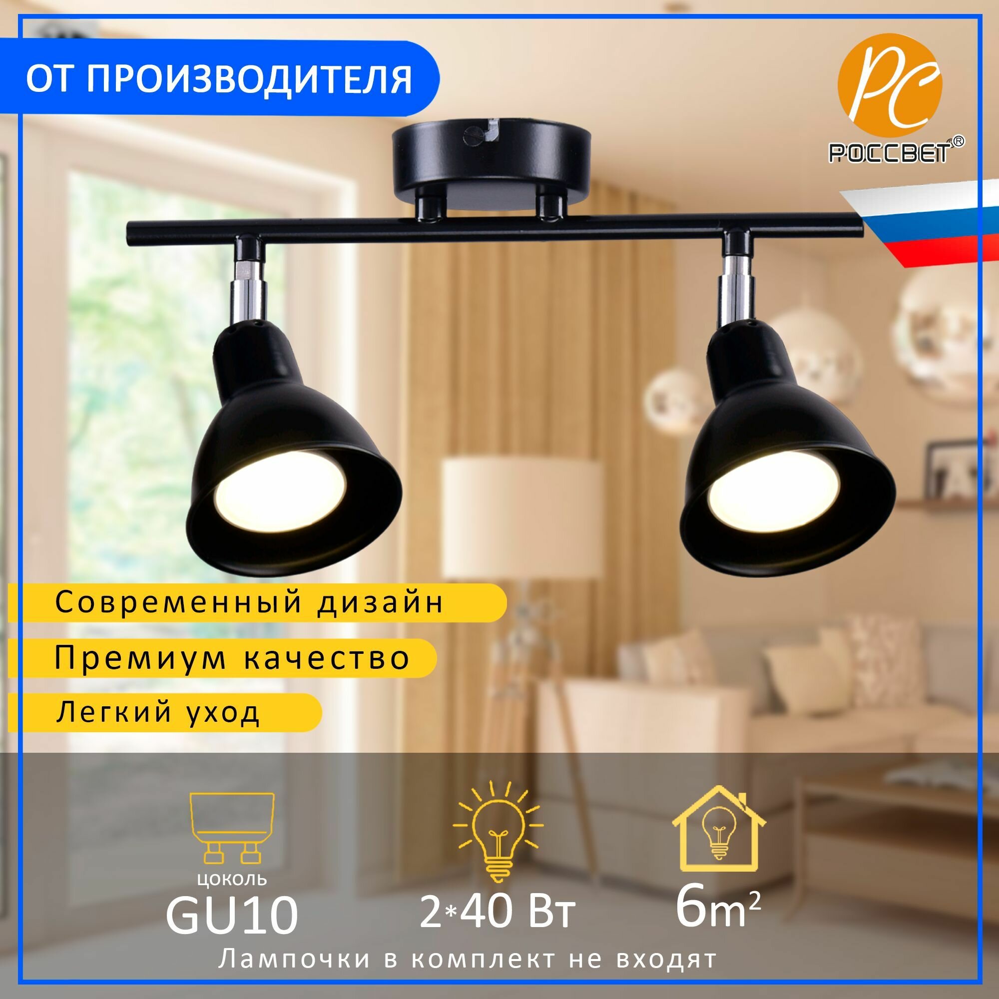 светильник настенный россвет велес рс21490 bk+cr/2c gu10х2х40вт