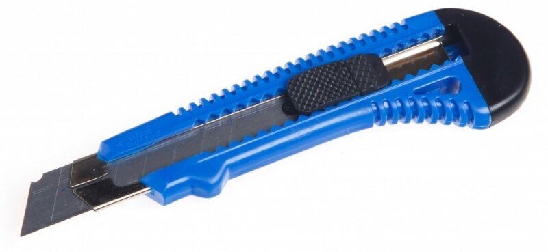Применяется для резки бумаги, картона и других материалов, при разрезании которых требуются малые усилия. Строительный нож является незаменимым инструментом для многих видов работ, связанных с ремонтом и строительством. Он имеет выдвижное лезвие, что позволяет быстро и легко менять его при необходимости.Преимущества Оснащен кнопками выдвижения и фиксации, позволяющими быстро и надежно зафиксировать рабочую часть лезвия необходимой длины Легко помещается в кармане или сумке, что позволяет брать его с собой на любые работы Имеет пластмассовый корпус с рифленой поверхностью, предотвращающей соскальзывание руки