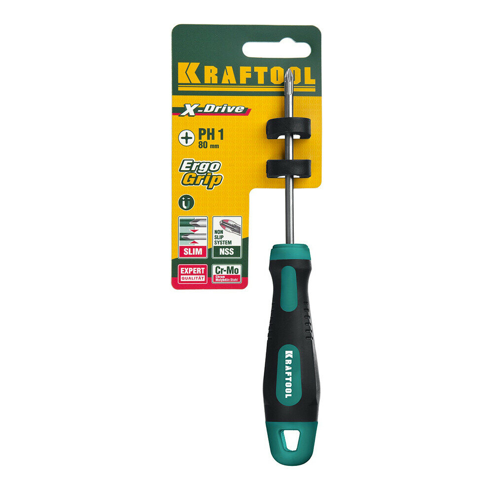 отвертка №1*80мм крестовая с двухкомпонентной ручкой cr-mo-v kraftool expert 250072-1-080 Х-Drive PH